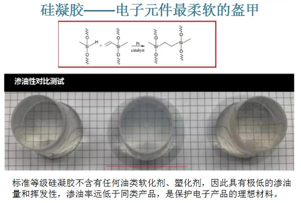 有機(jī)硅凝膠固化后是彈性膠體, 用在產(chǎn)品中起密封、灌封、保護(hù) 作用,在產(chǎn)品中能夠形成一個密 閉不透氣的密封效果。有機(jī)硅凝 膠的粘性較好,可以與金屬、 PVC等材質(zhì)有效的粘合,硫化成 型之后,硅凝膠產(chǎn)品非常柔軟, 可以很好的封裝芯片產(chǎn)品,且具 備良好的耐候性,優(yōu)異的化學(xué)穩(wěn) 定性,耐腐蝕,可吸收熱脹冷縮 發(fā)作的應(yīng)力而不會開裂,可有效 保護(hù)產(chǎn)品5-15年。