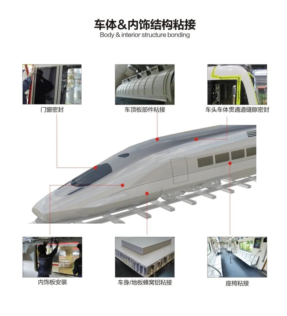 近年來,軌道交通行業(yè)高速發(fā)展,對列車的安全舒適性、整車氣密性、環(huán)保性、輕量化等的要求越來越高。與此同時,軌道交通用膠的性能要求也越來越嚴(yán)苛。具體來說,作為新一代高速軌道列車車體選材的重點,大量的復(fù)合材料、輕金屬材料替代了原來的重金屬材料,而這些材料的連接技術(shù)需要采用膠粘劑來實現(xiàn),膠粘劑正是起到輕量化作用的重要一環(huán)。有專家認(rèn)為,相對于焊接、螺釘、卡扣等連接技術(shù),粘接技術(shù)顯示出了更加優(yōu)異的綜合優(yōu)勢。具體表現(xiàn)為:均勻應(yīng)力分布減少震動,提供更好的外觀和允許獨特的設(shè)計,減重、可使用更薄的金屬基板,人工需求減少,免去鉆孔和焊縫磨削等流程等。
